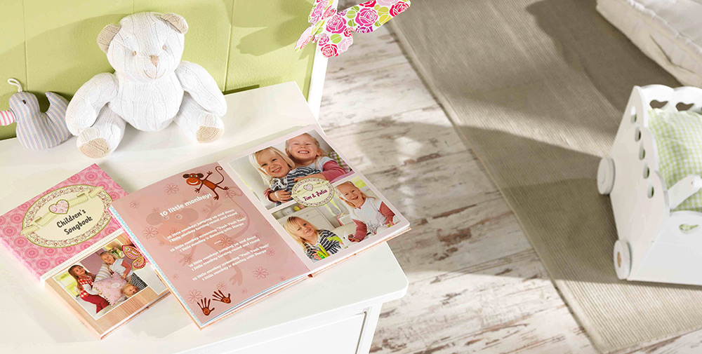 A song book makes a great gift for your children or your partner. Look for musical notes and lyrics of famous children's songs, such as "Old McDonald had a farm" and add a couple of matching photos, for a gift for your kids. If it's for your partner, choose their favourite songs, together with pictures that show your love. And (within the bounds of copyright law), why not make a CD of the songs to complete the gift set? All is possible with the Pixum Photo Book!